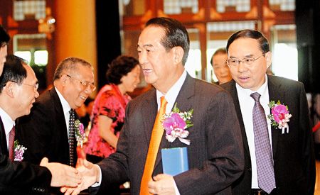 2010年臺(tái)灣湖南周暨第6屆湘臺(tái)經(jīng)貿(mào)交流合作論壇3日在臺(tái)北登場(chǎng),湖南省委副書記梅克保(右)親自歡送親民黨主席宋楚瑜(中)。 圖片來(lái)源:臺(tái)灣《中國(guó)時(shí)報(bào)》