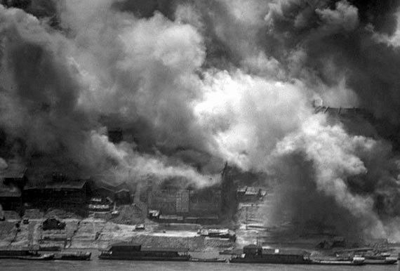 資料圖:日軍轟炸重慶朝天門(mén)碼頭。