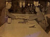 岡村寧次向何應(yīng)欽遞交投降書