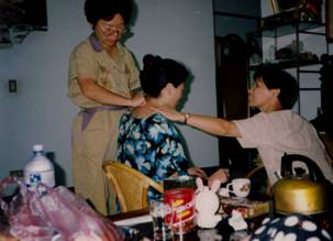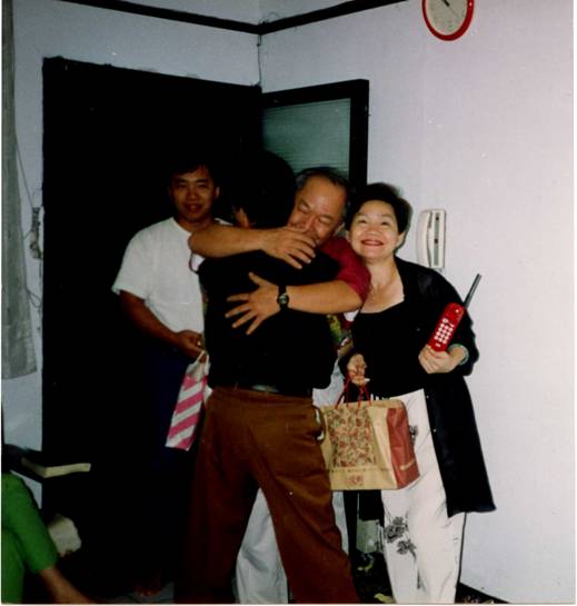 午夜,從墓地回到臺北永和秀朗路的大姐家時,很意外又驚訝的發(fā)現(xiàn)大哥帶著侄子(忠翰)站在巷口,慈母的逝去及十年的兩地分離,我們不由萬分感慨,悲從中來,大哥緊緊擁抱著我,兄弟倆放聲大哭一場。原來大哥一家人為慈母送完殯后就回美國加州去了,后來聽說我和金鳳被臺灣當(dāng)局最后放行后,他竟然再度跨越重洋返回臺灣,為了就是想見見遠(yuǎn)在北京的四弟和弟媳金鳳。