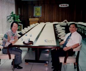 作者謝雨辰向TAA游象卿董事長介紹大陸喜人 變化(攝于公司大會議室)