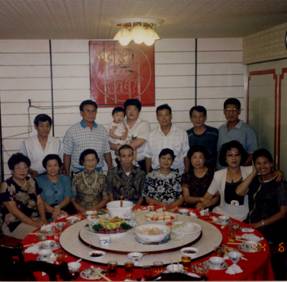 前排左起:五嫂、四嫂、大姐、大哥、二嫂、三嫂、六嫂和妻子金鳳,
