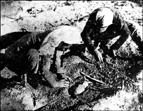 敵后根據(jù)地軍民在公路、村口、 家門口到處埋下地雷陣,廣泛 開展地雷戰(zhàn)。 |
