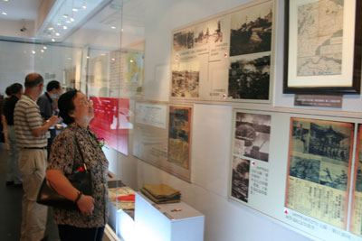 參訪團(tuán)參觀“紀(jì)念‘八·一三’淞滬抗戰(zhàn)70周年文物文獻(xiàn)展”