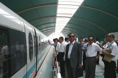 參訪團(tuán)一行在上海參觀并乘坐磁懸浮列車