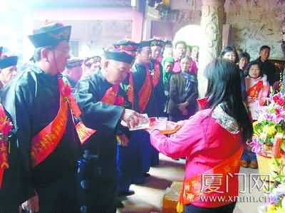 2月27日,臺灣臺南仁德鄉(xiāng)大甲慈濟宮近百名信眾來到廈門灌口深青深澤宮尋根進香。臺南縣的許先生告訴我們:在臺灣保生大帝擁有非常廣泛的信眾,在當(dāng)?shù),父輩們世代相傳仁德鄉(xiāng)的保生大帝信仰是從深青深澤宮分靈過去的,為了找到祖地,他們費盡了周折,因此這次進香,顯得非常隆重,提前幾個月就進行了籌備。為了秉承中華民族的文化傳統(tǒng),他們特地為一些主要人員趕制了一整套的中國古代服裝,以配合祭典的氛圍,而且還特制了到祖國大陸進香的專用旗幟。臺灣的蘇先生還告訴我們,由于這次進香趕不上春節(jié)包機,近百號的人只得到香港轉(zhuǎn)機。路途繞了一大圈,但這一點說明了大家對祖地的向往,同時也盼望能早日三通。