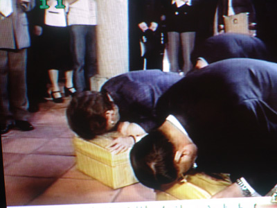 與在宗祠不同的是,連戰(zhàn)遵照古禮,從開基師祖連佛保的墓地上,取回了一小掊泥土,并隨家人繞祖墓一圈。