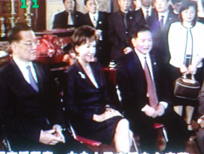 而連戰(zhàn)則回贈其祖父連橫撰寫的《臺灣通史》。