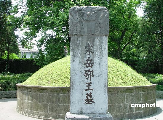 岳飛墓通稱岳墳。在岳王廟中線上。墓道兩側(cè)排列明朝墓廟重建時(shí)的石翁仲、石虎、石馬、石羊。岳飛墓前展示的,是歷史的判決,人心的向背,正義的不可戰(zhàn)勝。 岳飛墓墓門下有四個(gè)鐵鑄人像,反剪雙手,面墓而跪,即陷害岳飛的秦檜、王氏(檜妻)、張俊等四人。跪像背后墓門上有楹聯(lián)“青山有幸埋忠骨,白鐵無(wú)辜鑄佞臣”。墓道兩側(cè)排列明朝墓廟重建時(shí)的石翁仲、石虎、石馬、石羊。墓闕門兩向墓的鐵柵內(nèi),有作反翦雙手下跪狀的秦檜、王氏、萬(wàn)俟覘、張公俊四奸鐵鑄像。正如墓闕門楹聯(lián)所說的,[正邪自古同冰炭;毀淮于今判偽真];[青山有幸埋忠骨;白鐵無(wú)辜鑄佞臣]。岳飛墓前展示的,是歷史的判決,人心的向背,正義的不可戰(zhàn)勝。