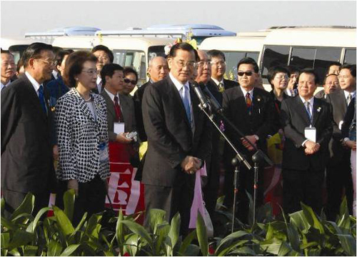 2005年4月26日連戰(zhàn)率團(tuán)抵達(dá)南京,在機(jī)場發(fā)表講話說:“這是歷史性的第一步”。