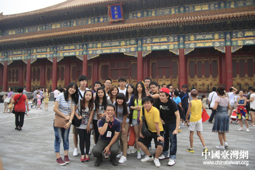 中國臺灣網(wǎng)8月12日北京消息 淺淺海峽,濃濃情誼,兩岸學子,心手相連。8月11日,由中國宋慶齡基金會和臺灣“十大杰出青年基金會”共同組織的臺灣青年學生交流團,參觀了故宮博物院、景山公園和天壇。在結(jié)束五天的北京參訪之旅后,他們將前往江南和西安,繼續(xù)開展以“歷史為根、文化為魂”為主旨的交流活動。