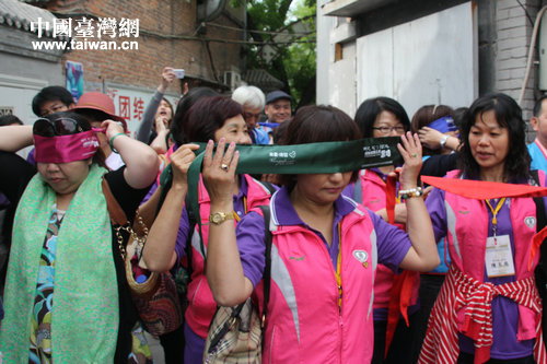 臺(tái)灣參訪團(tuán)成員蒙上眼睛準(zhǔn)備開始體驗(yàn)。(中國臺(tái)灣網(wǎng) 郭瑩瑩 攝)