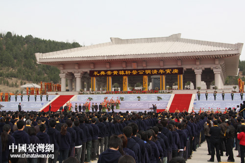 中國臺灣網(wǎng)4月5日陜西黃陵消息 庚寅(2010)年清明公祭黃帝典禮今日上午9時50分在陜西省黃陵縣橋山黃帝陵舉行,全國人大常委會副委員長烏云其木格,全國政協(xié)副主席、中共中央統(tǒng)戰(zhàn)部部長、中華海外聯(lián)誼會會長杜青林等領(lǐng)導(dǎo)同志分別向黃帝陵敬獻(xiàn)了花圈花籃,各省市、自治區(qū)、海內(nèi)外華人代表和港澳臺同胞代表等萬余人參加了典禮,共同祭奠華夏人文初祖軒轅黃帝。