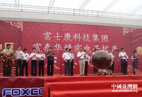 臺(tái)資企業(yè)富士康科技集團(tuán)泰華精密電子在鄭州舉行投產(chǎn)慶典儀式(圖片來源:河南省臺(tái)辦)