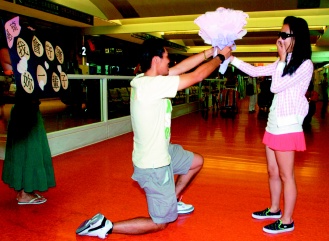 中新網(wǎng)8月26日電 據(jù)臺(tái)灣《聯(lián)合報(bào)》報(bào)道,七夕情人節(jié)到來前夕,桃園機(jī)場入境大廳出現(xiàn)浪漫求婚情節(jié)。