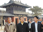 3月29日上午,親民黨主席宋楚瑜一行到五臺山普壽寺參觀訪問。宋楚瑜主席一行參觀了普壽寺的天王殿、大雄寶殿、法堂,并于大殿前上香祈福:國泰民安、風調(diào)雨順。宋楚瑜主席在如瑞法師的熱情邀請下,發(fā)表了簡短講話:祈求佛祖保佑所有的眾生免除戰(zhàn)爭的災難,希望世界和平,兩岸早日一統(tǒng)!