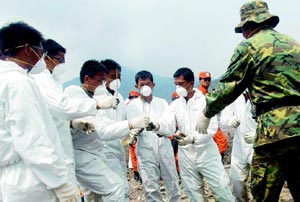臺(tái)當(dāng)局“衛(wèi)生署長(zhǎng)”楊志良說,當(dāng)災(zāi)民們看到志工及臺(tái)軍官兵都戴上口罩時(shí),或許心里會(huì)覺得怪怪的,但還請(qǐng)大家見諒,因?yàn)檫@也是為了保護(hù)災(zāi)民。由于甲型H1N1流感好發(fā)于年輕人,戴上口罩,這也讓救災(zāi)的年輕士兵多了一層保障。