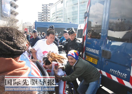 這下可忙壞了法國警察。一個在現(xiàn)場的中國記者后來在博客上寫到,在火炬接力的過程中,法國警方用直升機(jī)、引導(dǎo)車、安全車、騎警和滑輪滑的警察組成“安全氣囊”,一路“包裹著”火炬前行。