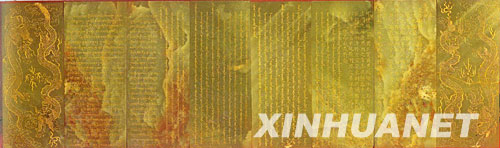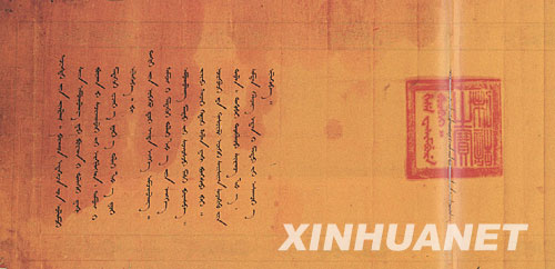 這是乾隆皇帝頒給八世達(dá)賴?yán)锏挠駜?cè)。 新華社發(fā)