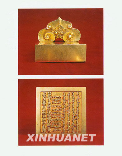 這是雍正皇帝頒給達(dá)賴?yán)锏慕鹩 ?新華社發(fā)