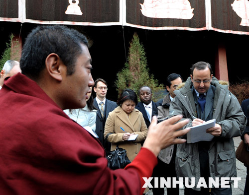 這是“3·14”事件后外國(guó)駐華使館(團(tuán))官員首次來(lái)到拉薩。15名外交官分別來(lái)自巴西、日本、加拿大、歐盟、英國(guó)、德國(guó)、法國(guó)、意大利、西班牙、斯洛文尼亞、新加坡、坦桑尼亞、澳大利亞、俄羅斯和美國(guó)。