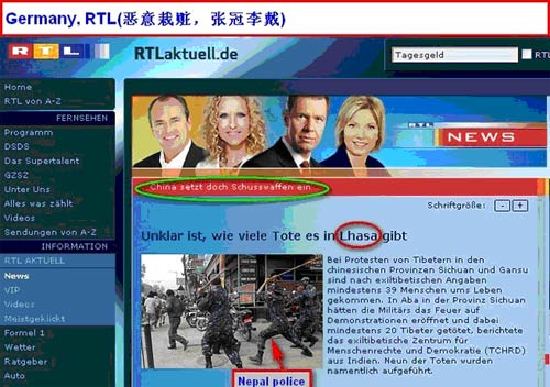 更讓人不可思議的是,有的媒體還移花接木。18日,德國(guó)一家報(bào)紙網(wǎng)站將一張西藏公安武警解救被襲漢族人的照片說(shuō)成是“在抓捕藏人”。有的把發(fā)生在別國(guó)的事情說(shuō)成是在中國(guó)拉薩發(fā)生的。美國(guó)一家電視臺(tái)網(wǎng)站刊登圖片稱,“中國(guó)軍人將藏人抗議者拉上卡車(chē)”,可圖片中出現(xiàn)的人物卻是印度警察;德國(guó)一家電視臺(tái)在報(bào)道中將早先尼泊爾警察抓捕藏人抗議者說(shuō)成是“發(fā)生在西藏的新事件”。此外,在西方某些媒體的報(bào)道中,還充斥著“軍事管制”、“藏人被殺數(shù)百人”等“妖魔化”中國(guó)的話語(yǔ)和字眼。