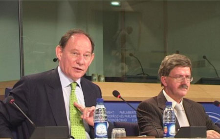 歐洲議會副主席斯科特(左)與“西藏小組”主席托馬斯·曼恩。