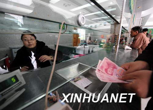 銀行職員小尼瑪(左)在為顧客辦理匯款業(yè)。新華社記者 覺果 攝