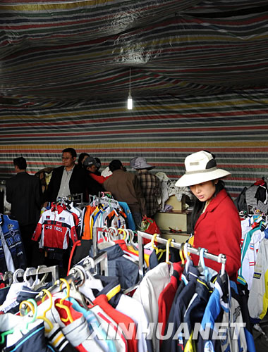 4月9日,拉薩3·14事件中受損嚴(yán)重的藍(lán)盾商廈恢復(fù)營(yíng)業(yè),顧客正在購(gòu)買(mǎi)衣服。