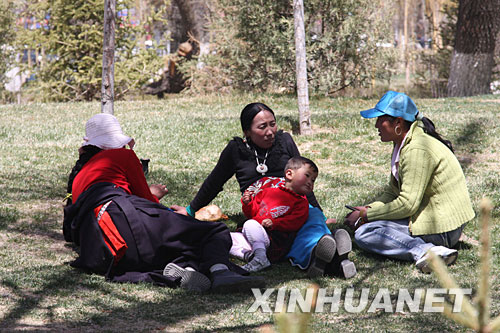 4月9日,龍王潭公園的草坪上,藏族群眾悠閑地享受春日的陽(yáng)光。4月的拉薩,陰霾已逐漸散去,春天正快步走來(lái)。新華社記者 劉錚攝