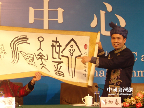 來自貴州的水族人大代表張加春向大家展示“水書”