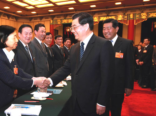 胡錦濤在看望參加全國政協(xié)會(huì)議民革臺(tái)盟臺(tái)聯(lián)委員時(shí)強(qiáng)調(diào)