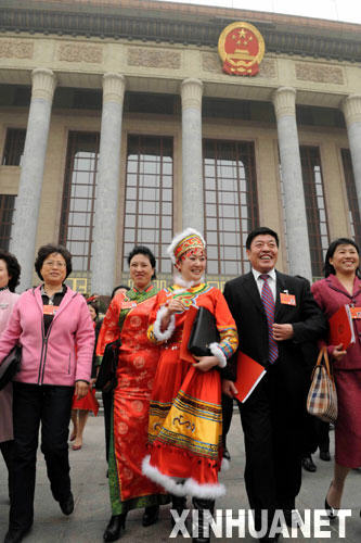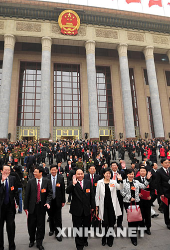 3月18日,第十一屆全國(guó)人民代表大會(huì)第一次會(huì)議在北京人民大會(huì)堂閉幕。這是代表們走出會(huì)場(chǎng)。新華社記者朱祥 攝