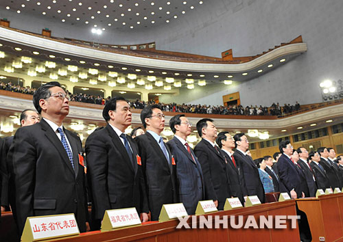 這是代表起立,奏國(guó)歌。 新華社記者樊如鈞攝