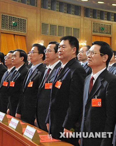 這是代表全體起立,高奏國(guó)歌。 新華社記者樊如鈞攝