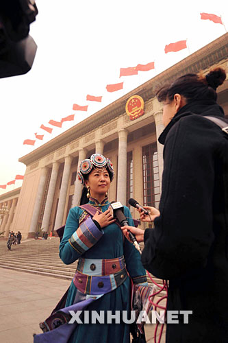 這是閉幕會(huì)結(jié)束后,一名代表在接受采訪。 新華社記者楊宗友攝