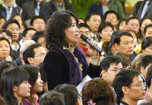 3月18日,國(guó)務(wù)院總理溫家寶和副總理李克強(qiáng)、回良玉、張德江、王岐山在北京人民大會(huì)堂與中外記者見(jiàn)面,并回答記者提問(wèn)。圖為臺(tái)灣工商時(shí)報(bào)記者在提問(wèn)。新華網(wǎng) 郭毅 攝