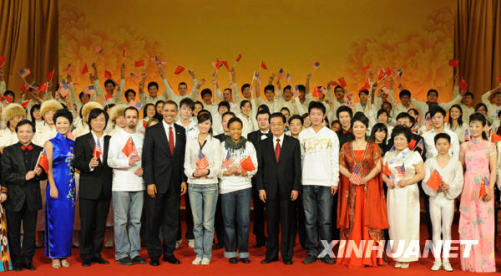 文藝演出的高潮是中國青年歌手組合羽·泉與中美大學生合唱團同臺合唱的歌曲。兩國年輕人用英文演唱了美國歌曲《那就是朋友相處之道》和北京奧運會的主題曲《我和你》。歌聲透著青春,飽含激情和對未來的希望。