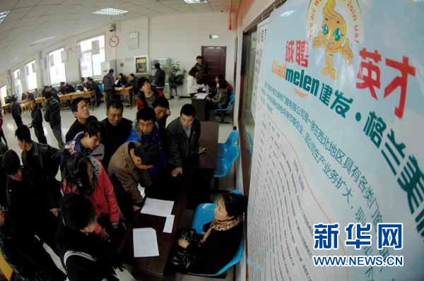 2月22日,求職者在咨詢崗位信息。當(dāng)日,銀川流動人口就業(yè)服務(wù)中心組織全市92家企業(yè)在銀川市人才資源市場舉辦農(nóng)民工專場招聘會,雖然從提供的1600多個就業(yè)崗位可以看出企業(yè)的“求賢若渴”,但是前來參加招聘會的農(nóng)民工仍然是觀望者多。記者采訪發(fā)現(xiàn),很多農(nóng)民工表示不愿意從事諸如服務(wù)員、保潔、門衛(wèi)、雜工、保安等工作,而廚師、設(shè)計人員、汽車修理工、業(yè)務(wù)經(jīng)理等崗位卻因為專業(yè)技能和學(xué)歷要求較高讓一些農(nóng)民工望而卻步! ⌒氯A社記者 彭昭之 攝