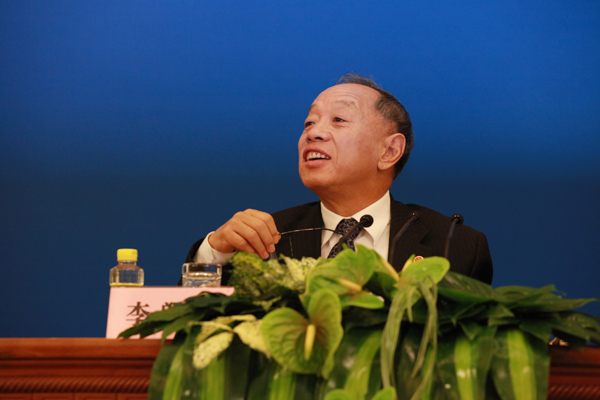 十一屆全國人大四次會議于3月4日(星期五)上午11時在人民大會堂三層金色大廳舉行新聞發(fā)布會,由大會發(fā)言人就會議議程和人大工作相關的問題回答中外記者的提問。圖為大會發(fā)言人李肇星。吳莼 攝