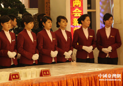 人民大會堂內茶歇處服務人員。(中國臺灣網 高斯斯 攝)