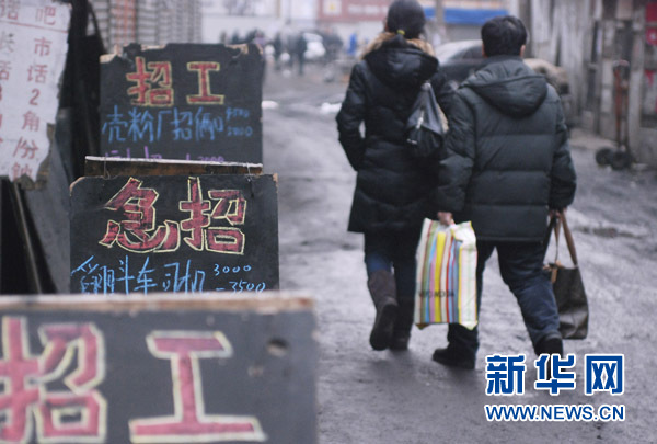 2月23日,沈陽市一街道旁擺了幾塊招工信息板。新華社發(fā)(李雨澤 攝)