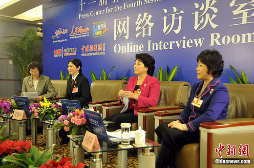 3月8日,十一屆全國人大四次會議新聞中心邀請3位全國人大代表,結(jié)合聽取和審議政府工作報(bào)告,就“婦女發(fā)展”與網(wǎng)民進(jìn)行在線交流。中新網(wǎng)記者 鄧永勝 攝