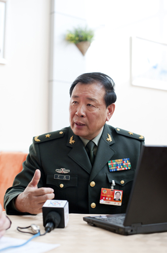 全國政協(xié)委員羅援正在接受采訪。(攝影 肖春陽 閆文)