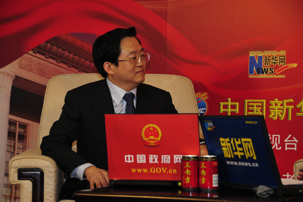 2011年3月3日,全國(guó)政協(xié)十一屆四次會(huì)議在北京人民大會(huì)堂開幕。圖為這是全國(guó)政協(xié)委員許樹強(qiáng)接受新華網(wǎng)、中國(guó)政府網(wǎng)采訪。新華網(wǎng) 李非 攝