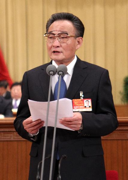 3月5日,第十一屆全國人民代表大會(huì)第四次會(huì)議在北京人民大會(huì)堂開幕。吳邦國主持會(huì)議。 新華社記者蘭紅光攝