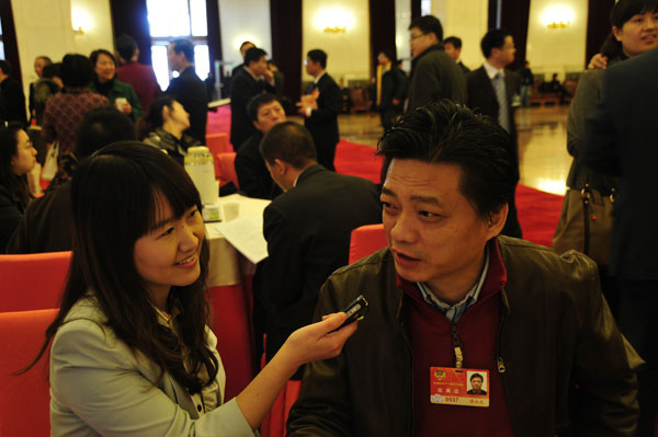 3月9日9時,全國政協(xié)十一屆四次會議第二次全體會議在人民大會堂舉行。圖為全國政協(xié)委員崔永元接受新華網(wǎng)記者專訪。宋君毅 攝