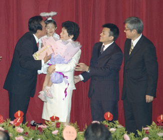歡迎午宴感人一幕 陳云林慈愛(ài)親吻早產(chǎn)兒陳喻安