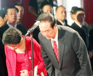 江丙坤臺(tái)北地標(biāo)夜宴陳云林 妙聯(lián)高掛迎賓朋