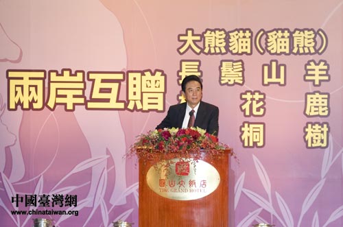兩岸互贈珍稀動植物記者會今天在臺北舉行。這是陳云林在致辭。中國臺灣網(wǎng) 田云鵬攝